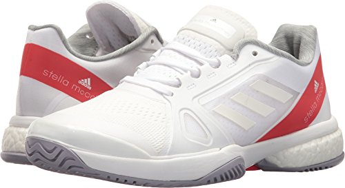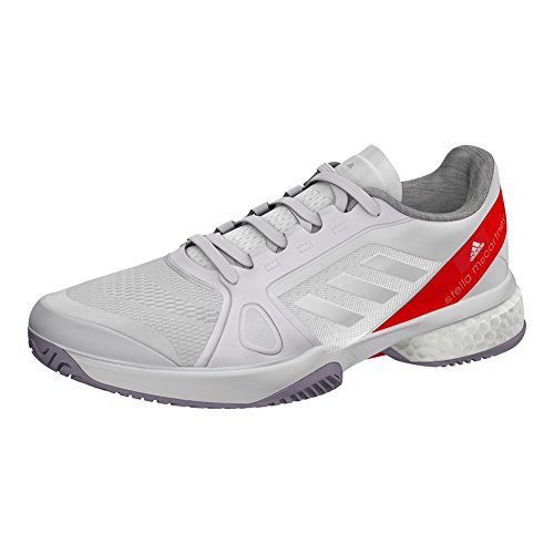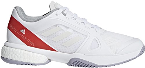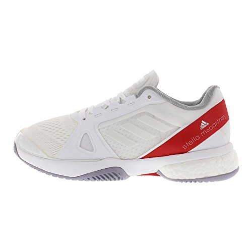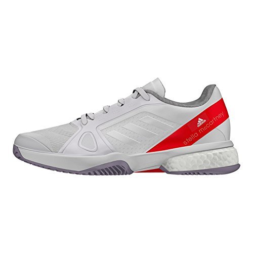 Binding : Apparel Product Description Adidas and Stella McCartney feature the Barricade Boost shoe with a modern and dynamic design. This model unites support and flexibility in order to provide a high level of support when you are moving around the court. This model offers woven mesh on the vamp and the upper part of the shoe is in mesh and TPU in order to provide the perfect compromise between flexibility and support. This model is made for defensive players, such as Caroline Wozniacki. Get ready to be suprised by the return of energy you will feel thanks to the intermediate BoostTM sole. The level of comfort is exceptional because of the shoe's tongue and the redesigned sole that effectively adapts to the shape of your feet. This model is flexible, dynamic and robust; sticking to the classic Barricade characteristics. Adidas features a feminine and dynamic model in order to allow you to perform well and look great on court ! - Boost technology for infinite energy flow : more speed and light weight - The upper part of the shoe in mesh is seamless : comfortable and for an exceptional fit - TPU layer welded into the upper part of the shoe for better longevity around the areas that are most likely to experience wear and tear - EVA insole with expanded TPU capsules in the heel - Ergonomic heel reinforcement - ADIWEAR 6 out-sole for outstanding longevity 0
