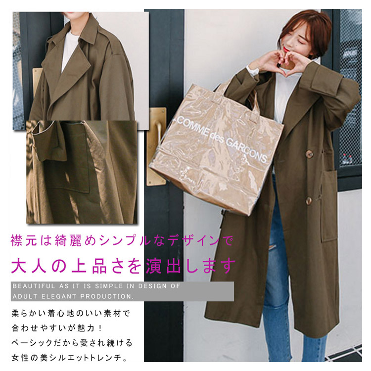 | 美シルエットが魅力のトレンチコートが登場。キレイめスタイルにもカジュアルスタイルにもマッチする、オンオフ問わず活躍する1着。ロングトレンチは大人のきちんと感とこなれたおしゃれ女子の魅力を引き出します。さっと羽織るだけで一気にトレンド感をUPさせてくれる、今季大活躍間違いなしのマストアイテム♪ | |