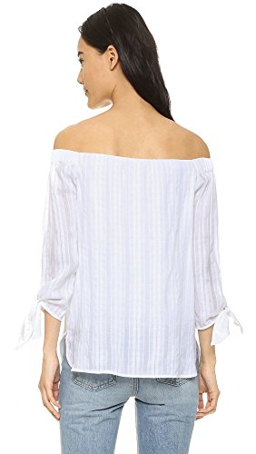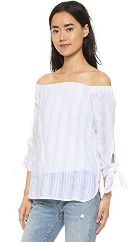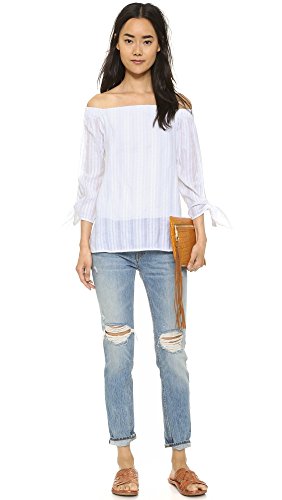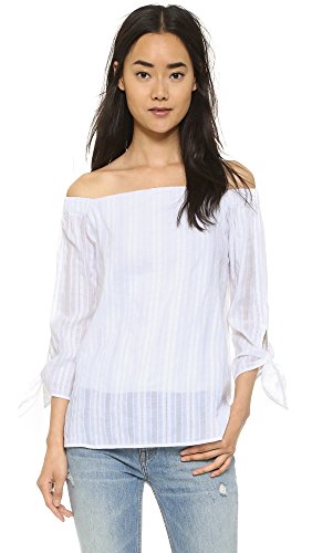 Off the shoulder embroidered cotton top, accented with its 3/4 length tie sleeves.
