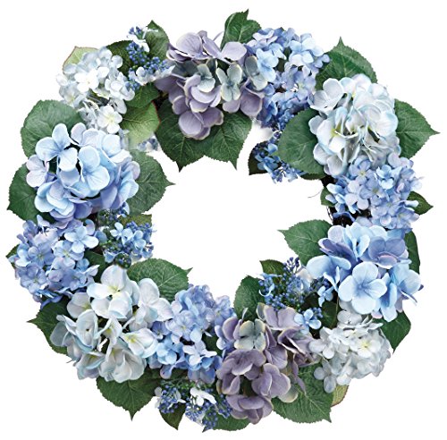 - Rich tones of blue, light blue and soft lavender in this Hydrangea wreath