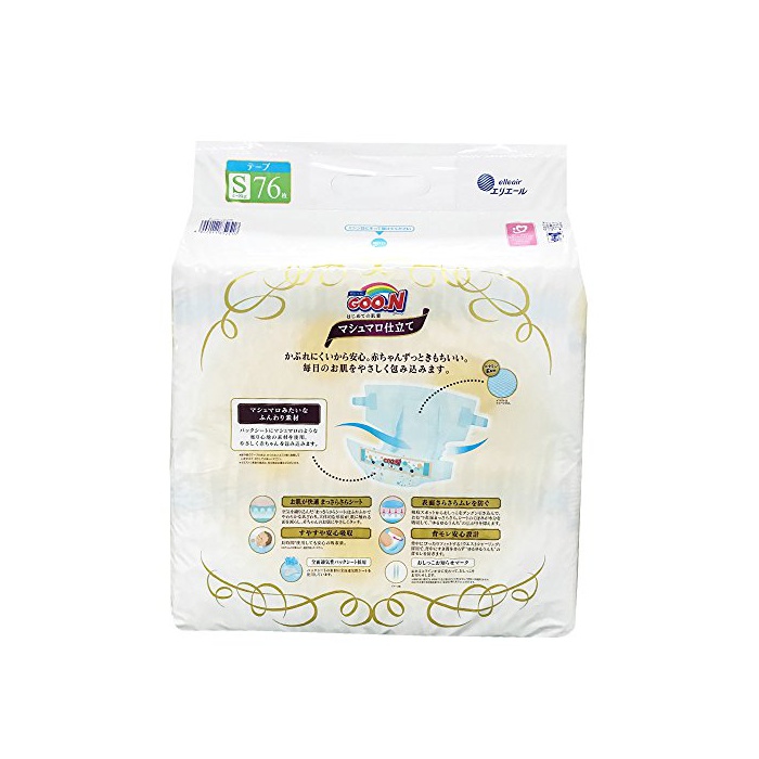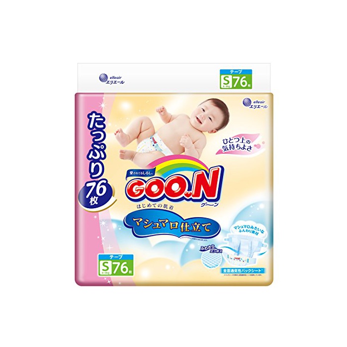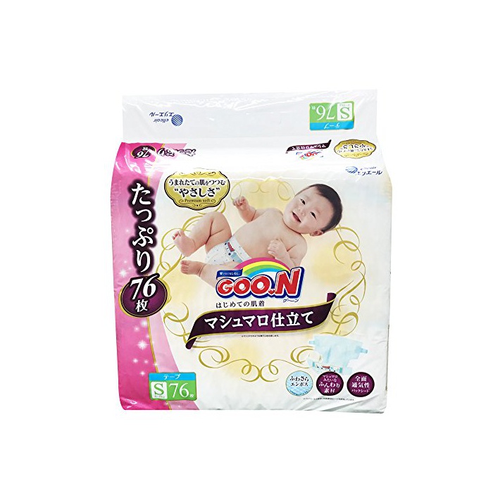원본상품명: グ?ン(GOO.N) テ?プ はじめての肌着 マシュマロ仕立て Sサイズ (4~8kg) 76枚