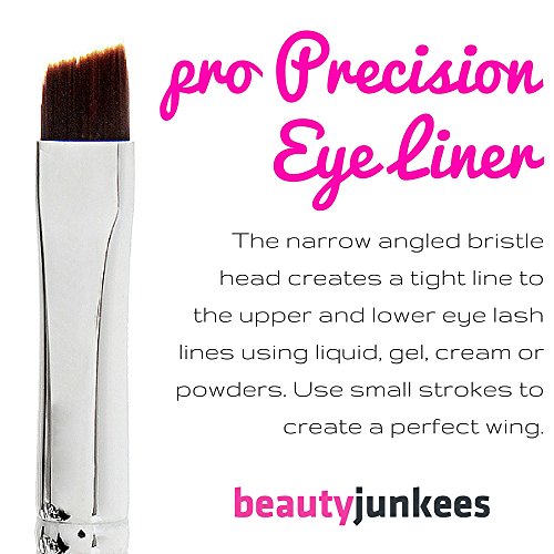 -. Feature : SAVE 50% OR MORE - Stop paying for the name! Before you spend more money on another expensive eye brush, try Beauty Junkees professional quality makeup brushes and sponges. Our brushes are 1/2 the P.R.Ice of the brushes we've been compared to. You know - the big, $$$ brands! / BRISTLE PERFECTION - The key to great makeup brushes are the bristles. Our high quality bristles are soft, yet just the right density for packing color. Soft, silky bristles glide over the delicate eye area, making eye shadow and liner application a breeze. Clean up beautifully with zero shedding. Best eye makeup brushes ever! / UNIQUE VERSATILITY - The pro Precision Eye Liner has a narrow angled bristle head designed for applying a tight line to the upper and lower eye lash lines using liquid, gel, cream or powders. Apply liner to the upper rim of the lash line to create the illusion of darker, fuller eyelashes. This brush also works to fill in your brows. / GET A SWEET DEAL - Buy Any 1 Eyeshadow or Eyeliner Brush, or get the set of 8 Brushes with a FREE Sleek Brush Case for an AMAZING low P.R.Ice. (Value $94.73). Brush Case measures 9.25" W X 4.5" H X 0.5" D (expandable). This is a limited time offer. / BUY TODAY WITH BEAUTY JUNKEES RISK FREE PROMISE - Buying a good eye brush online can be a daunting process. Try just one or the set. Be sure to read the follow up emails about how the pros recommend using each brush. Feel free to use different products and makeup techniques and see the difference a pro quality brush can make! If youÕre not completely satisfied with your purchase, just return it for a no questions asked FULL REFUND!