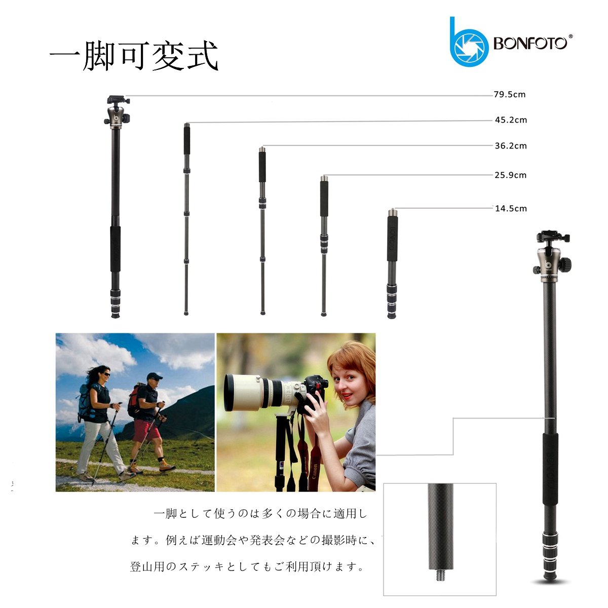 For example, you can use it as a mountaineering stick at the time of shootings such as athletic meetings and recital meetings.