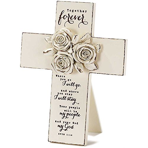 Together Forever Floral Cream 7 Inches Wood Resin Easelback Cross