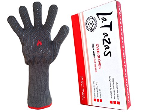 LaTazas Extreme Heat Resistant Grill Oven Mitts, Hot 932°F (EN407) 14 Inches Extra Long and Thick Protection BBQ Gloves for Grilling, Cooking, Fireplace, Barbecue and Pot holders with Grey, Set of 2