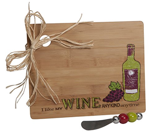 C.R. Gibson QCB-14062 Wine Oh! Wood Cheese Board with Spreader, Multicolor