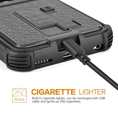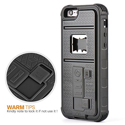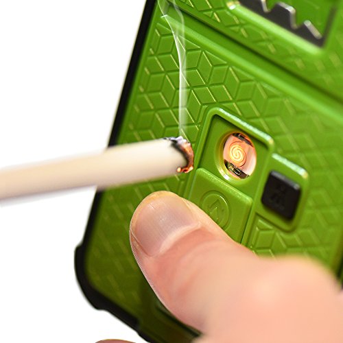 - Feature : Newly Qulity improved Cigarette Lighter/Bottle Opener/ Camera Stable Tripod/Shockproof Case Cover for iPhone 6/iPhone 6 Plus / Multi-function: It is not only a phone case, but also a beer / bottle opener, cigarette lighter and camera holder / Specially designed hard shell, top-end and luxury, Sleek and durable polycarbonate plastic protects your phone from drops or bumps,great protection to your phone from dust, shock, falling。 / No flame rechargeable lighter, safe and easy,Lighter case can ignite up to 250 cigarettes before needing 1.6 hours recharge. A built-in USB port provides easy recharge options, including your smartphone's power adapter, or a desktop or laptop computer. / Easy access to all buttons, controls & ports without having to remove the case,
