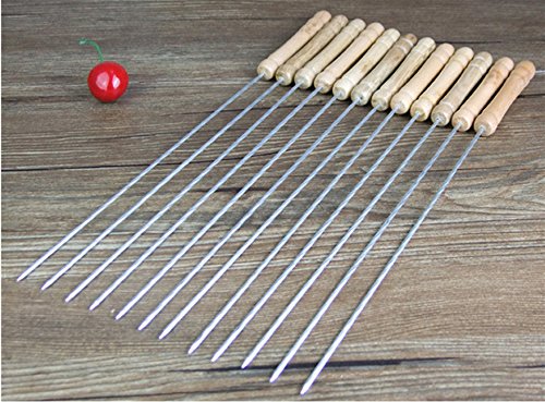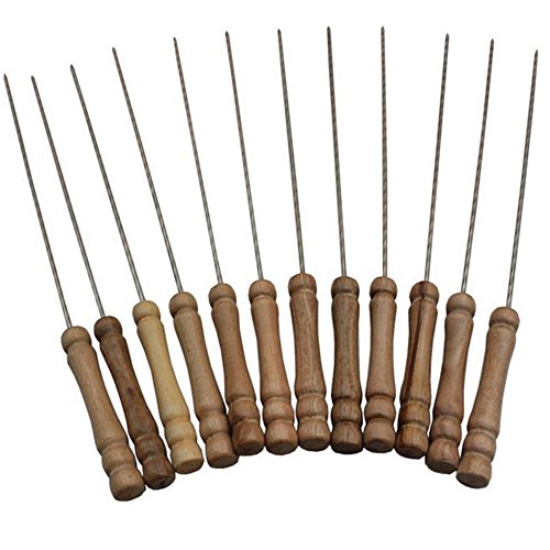 BBQ Grill Skewers, Tocean Twisted Stainless Steel Barbecue Kebab Skewers with Wooden Handle Perfect for Barbecue Shish Kabob,Baking and Cooking - 12 Pack