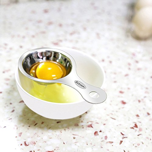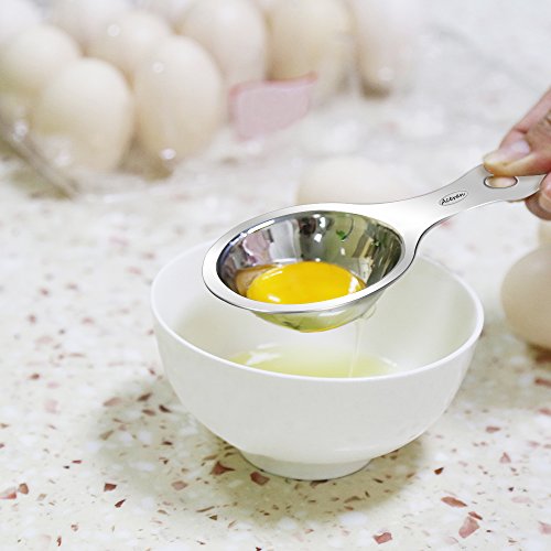- This egg separator professional made of high quality 304 stainless steel (18/8), mirror finish surface, rust resistant, anti-corrosion material. It is a good tool for cooking aid ( best assistant for kitchen ), rediscover a joy of cooking healthy