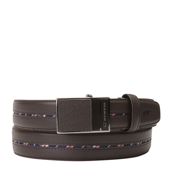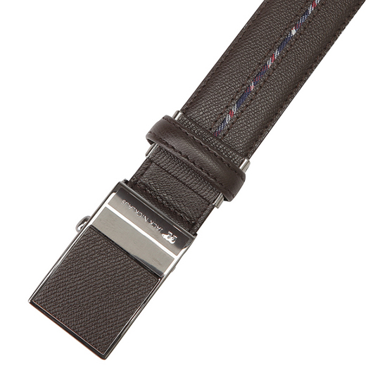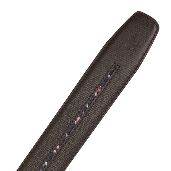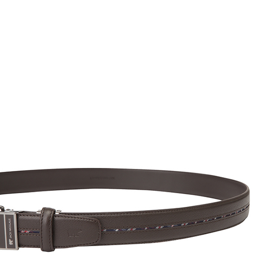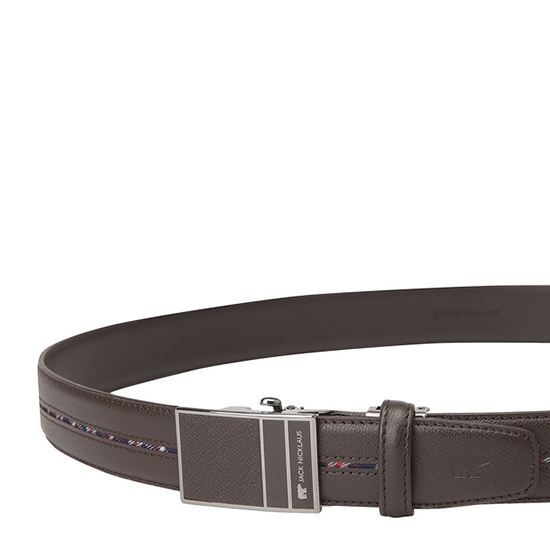 - 중앙의 체크 라인을 적용한 남성 자동 벨트.