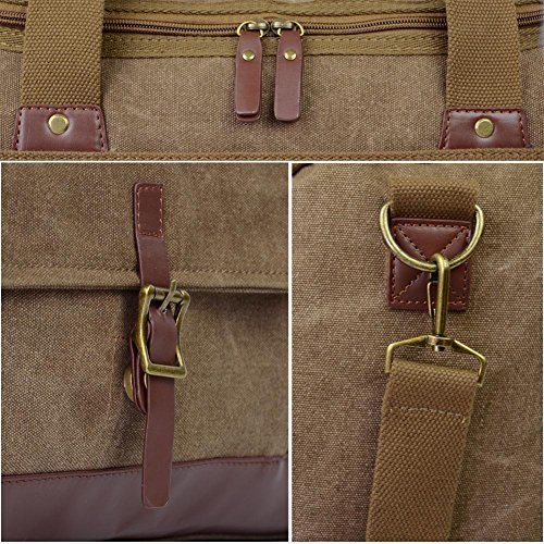 - Made of high quality 16oz thick and durable canvas, decorated by top quality leather which makes the bag more fashion and casual