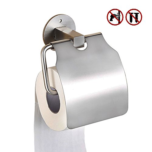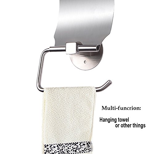 Netcosy Self Adhesive Toilet Paper Holder, Stainless Steel Bathroom Tissue Holder with Lid Wall Mounted Drill Free Towel Hanger