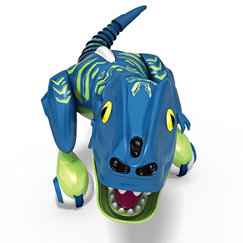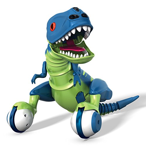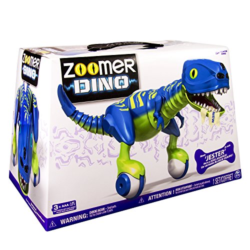Discover the evolution of fun! Jester is the all-new interactive species of Zoomer Dino (Jokeasaurus) who can’t wait to make you laugh! His nose is full of sensors that detect your movement and help him sniff out fun. But watch out! Just like a real Dino he can get angry, spin around, chomp and roar! Using True Balance Technology, Jester perfectly balances on two wheels as he roams freely, exploring your home. Use your hands to tame his Dino nature or use the remote control to record and playback his moves. You can even show them off to friends and family to reveal your dino mastery! Jester’s a little silly, so if you hear him giggling, it’s probably because he finds everything funny, including when you make him dizzy! Guide him by hand, hypnotize him, watch him perform tricks and more! Jester’s the evolution of fun! Bring home the laughs with Jester the Jokesaurus! He’s the life of the party!Feature
