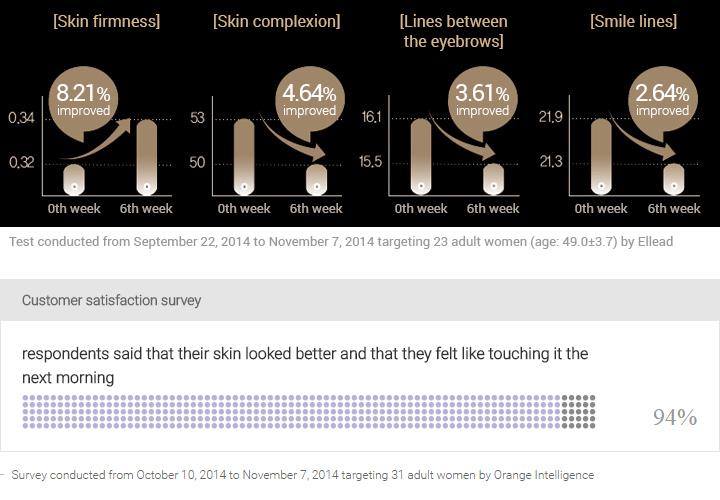 | Put an adequate amount on your cheeks, chin and forehead in the cream step of your skincare routine after using the serum in the morning/evening, apply from the center to the outside and then massage the face as described below: Put both thumbs under the jawbone and pull the face toward the ears. Pull the corners of your mouth upward while looking in the mirror, smile and then press the corners with your thumbs for 5 seconds as if you're pressing the upper gums. Put both thumbs under the cheekbones, press and pull upward like you're pushing the bones up. Move your thumbs inside out to massage the entire cheekbone area. Press the innermost corner of the eyebrows with your index and middle fingers, divide eyebrows into three parts depending on the shape of your eyebrows and then massage each part. Massage the entire eyebrows to smooth out any wrinkles between the eyebrows. Sweep the skin from the innermost corner of the eyebrows to the forehead, stretch the fingers and then massage along the forehead lines. |