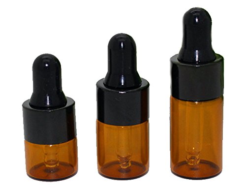 25Pcs Mini 2ML Empty Refillable Amber Glass Essential Oil Bottles Perfume Cosmetic Liquid Aromatherapy Lotion Sample Storage Containers Vials Jars with Eye...
