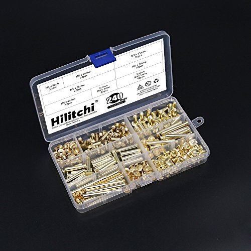 Hilitchi 120-Sets M5 x 5 / 10 / 15 / 25 / 35 / 45 Brass Plated Phillips Chicago Screw Posts Binding Screws Assortment Kit for Scrapbook Photo Albums Binding, Leather Repair - Gold