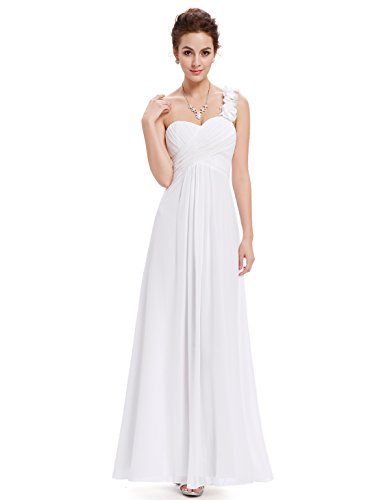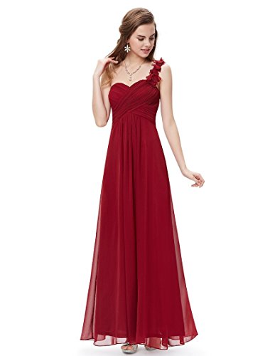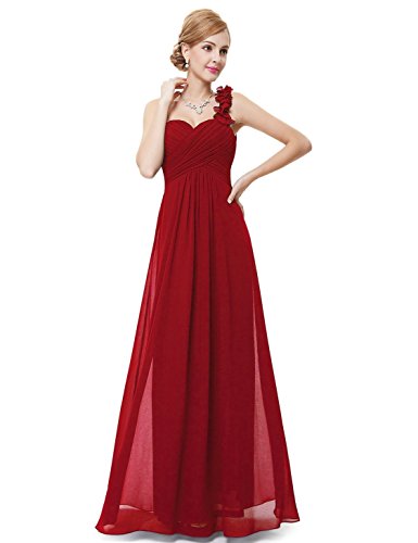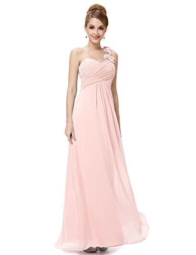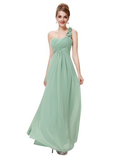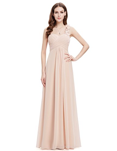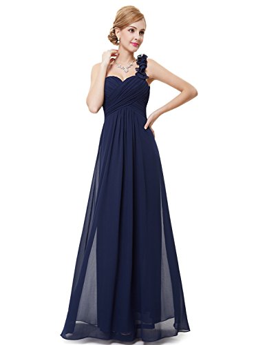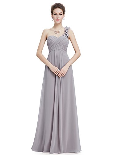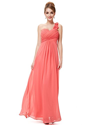 This stunning one shoulder gown features a flattering ruched sweetheart neckline with a draping lower design in the lower half of the silhouette. The non-removable flower detailing on the single shoulder strap gives the dress a sweet touch and the shoulder strap is non-adjustable. If you are looking for an elegant, gorgeous bridesmaids dress, this is the perfect choice as it is one of our most popular bridesmaids stylesFeature