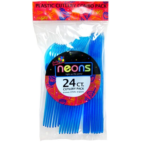 Party Dimensions Neon 24 Count Combo Cutlery, Blue