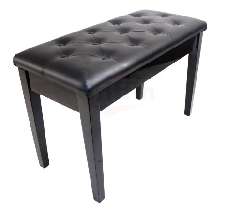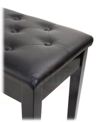 - Title : Ebony Black Leather Piano Bench Wood Double Duet Keyboard Seat with Storage Griffin