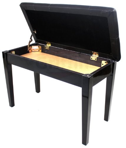 - Feature : 1 year Replacement Warranty. 30 Day Money Back. See seller terms for details. / Seats up to two persons | Black glossy finish / Padded synthetic leather seat / Storage compartment beneath seat | Solid wood frame and legs | Assembly wrench included at no extra cost / Specifications: Length 29 inches | Width 13 inches | Height 19 inches | Weight Capacity 300 pounds