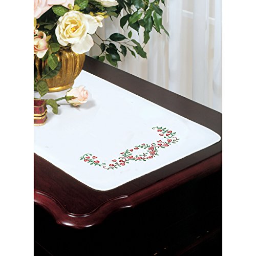 Tobin Stamped White Dresser Scarf for Embroidery 14"X39"-Heart Vine