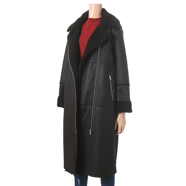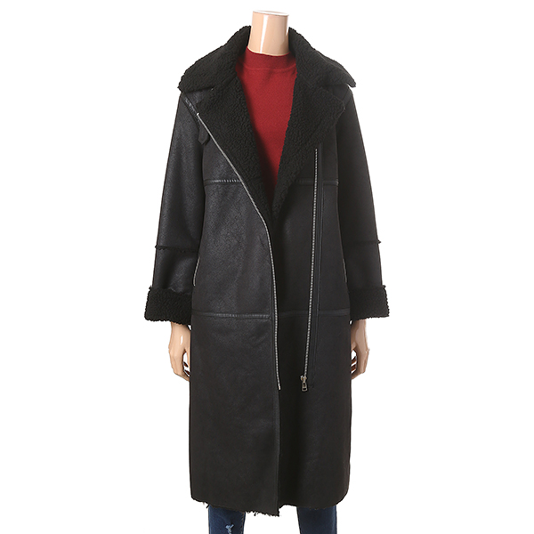시크한 블랙 컬러에 절개 디테일과 지퍼 장식으로 포인트를 준 롱 무스탕 입니다. 롱 한 길이감과 뽀글이 안감 장식으로 멋스러우며 시크한 감성을 어필해 줍니다.
