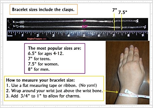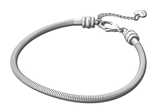- Feature : INCLUDES BONUS charm, gift bag, and manufacturer warranty card with every order, suitable for immediate gift giving, making this A Real Value. Master snake chain looks great with any mix of glass, rhinestone, or birthstone charms, and blends well with other color metals. / HIGH QUALITY 316 surgical grade stainless steel resists corrosion and wear, is hypo-allergenic, and nickel, lead & cadmium-free. Beautiful platinum patina is the natural color of this steel and will never wear off, tarnish, or turn colors. STRONG STEEL keeps your charms safe. Does not require regular polishing like 925 sterling silver. / THE MOST POPULAR size 7.5" with 1.5" screw end extender and heart charm. Clasp can be easily opened and put on by yourself and requires no special tools: simply wrap under the wrist and snap closed. / COMPATIBLE fit with Add a Bead bracelets and necklaces brands like Trollbeads Chamilia Biagi Caprice Hallmark Connections Oriana Lovelinks by Aagard Reflections Individuality Storywheel Novobeads Storyvines DaVinci Soufeel Kays Charmed Memories Ohm SimStars Brighton Zable and Pandora. / 62-DAY UNCONDITIONAL original manufacturer money-back guarantee from The Knights Treasure LLC. Carefully hand inspected to insure quality. Will fit all spacers, beads and charms with a core size of 3.5mm and up.