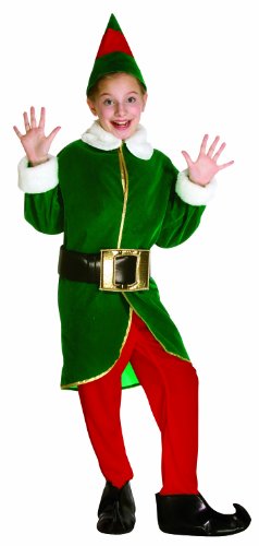 Kids can celebrate Christmas as Santa's little helper in our Christmas Elf Child Costume! Boys and girls can embody the spirit of the holiday season with pride. Our kids' Christmas Elf Costume includes a gold trimmed hunter green jacket with white faux fur cuffs and collar, red pants with elastic waist, black belt with oversize gold buckle, a pointed red and green striped hat and black elf shoe cover booties. It makes a festive outfit for passing out the presents under the tree or holiday pageants. Your little North Pole enthusiast is sure to have a holly jolly Christmas in our kids' elf costume.Feature