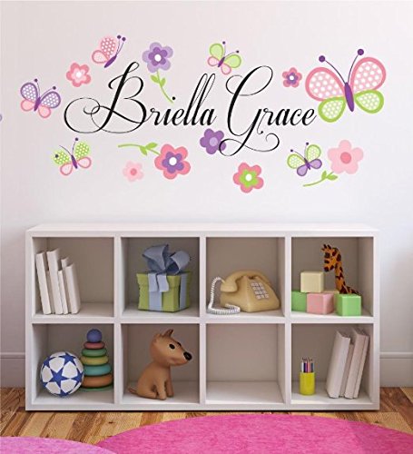 -. Title : Flowers and Butterflies Personalized Custom Name Childrens Nursery P.R.Inted Vinyl Wall Decal PLUS FREE 12" WHITE HELLO DOOR DECAL, Girl Name Wall Decal, Girls Name Decal, Wall Decor, Butterfly Decals