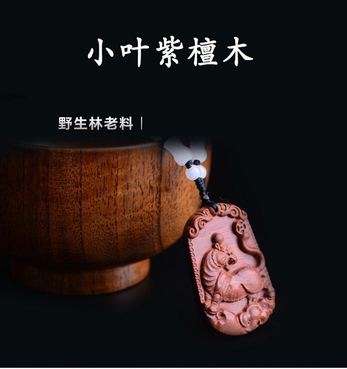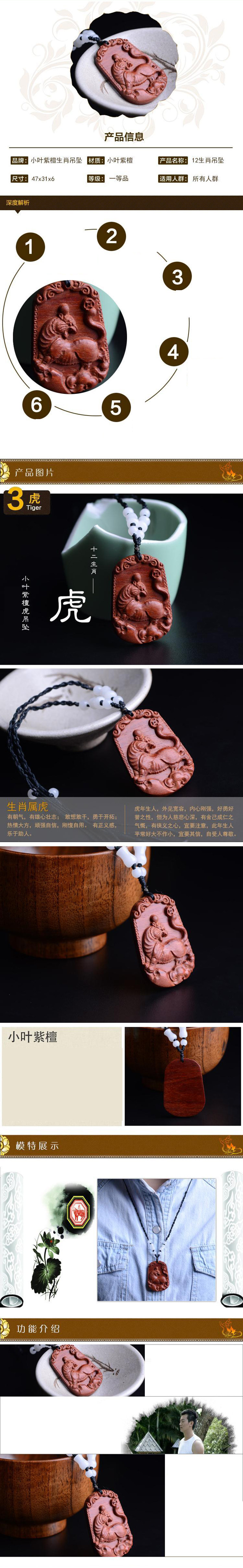 开光 小叶紫檀木生肖虎贪狼化禄吊坠项链 项坠男女饰品挂件
