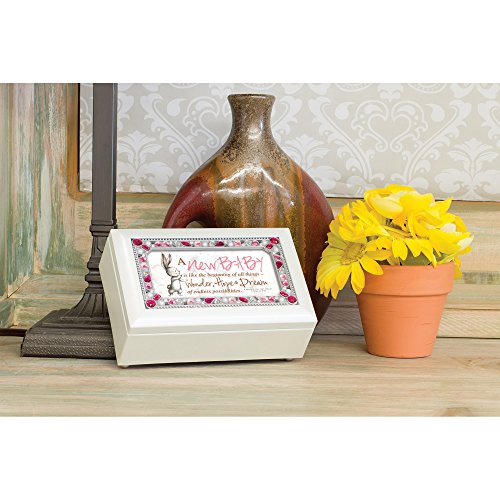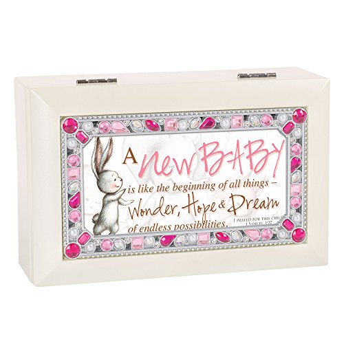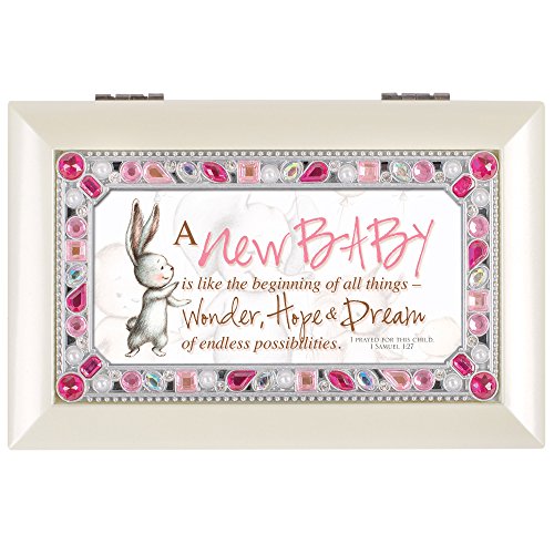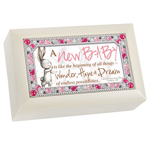 New Baby Hope and Dreams Ivory Colored Pink Jeweled Petite Music Box Plays Jesus Loves Me