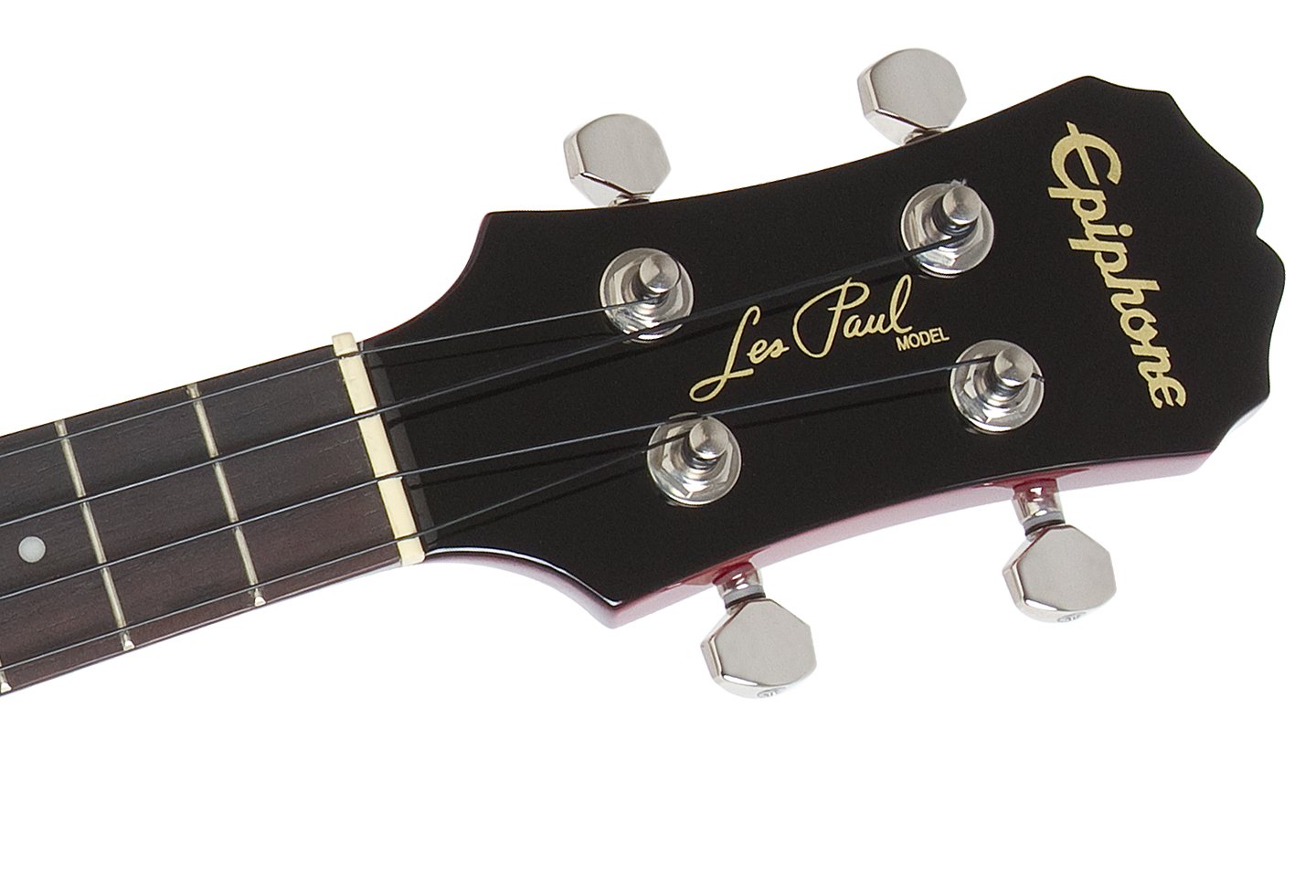 It is an ukulele shaped like an electric guitar by Gibson / Epiphone, which is a famous "Les Paul".