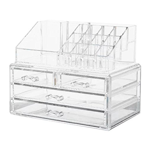 Feature : Add this item to your wishlist to follow the promotion information( highest to 30% discount and free gift) . / This Simplify Cosmetic and Jewelry organizer case is a perfect accessory to any bathroom, vanity, or dresser! Keeps all of your cosmetics or jewelry within reach and organized! / Large capacity and clear acrylic material can contains all of your makeup palettes in one location and conveniently at your fingertips! / Multi size compartment can help you organize your gel pplish ,liquid powder,makeup brush and even face tone! / Lifetime Qautlity Warranty.No worries about the item quality when buy from seller "Iebeauty".Free USPS tracking number if order price higher than9.99 ,7-15 busiess days for delivery.