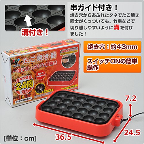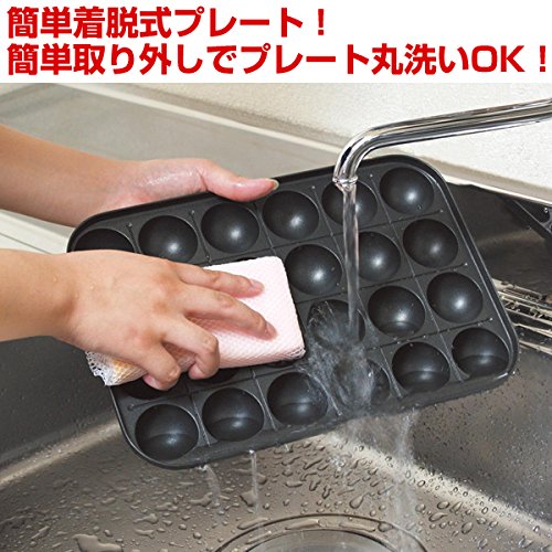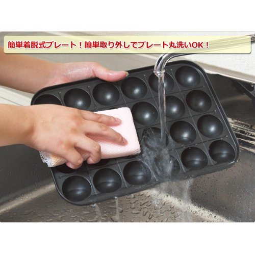 -. Feature : Power consumption: 800 W / Dimensions: 365 x 245 x 72 mm / Weight: 1.45 kg / Holes: 24 / Plate: Fluorine resin coated plate (removable, easy to clean, 100% safe)
