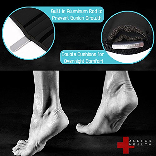 Studio : 25th and Dove LLC Publisher : 25th and Dove LLC Binding : Health and Beauty Product Description Start feeling the relief in a few days with the Anchor Health Bunion Support Splint and Toe Spacers. Our Bunion Corrector set was designed with what you're looking for most - Day and Night support with a brilliant design. The Anchor Health Bunion brace features a aluminum rod to help stabilize your big toe and allow normal bone growth and to prevent future bunion growth while reducing pain - this brace is ideal for overnight use. Our Toe Spacer Guard is designed to give adequate space and cushion between your big toe and 2nd toe and to reduce pressure and to promote normal bone growth. Experience the Anchor Health difference today and buy with confidence with our LIFETIME GUARANTEE! 0