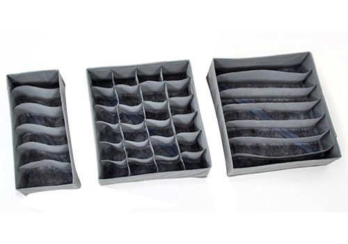 -. Title : Gaorui Foldable Bamboo Charcoal Storage Organizer Box for Underwear Bra Sock Ties 3pc/set _ Gray