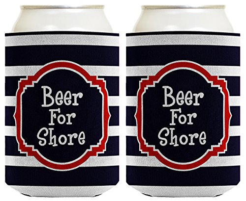 Sailing Gift Beer Coolie Beer for Shore Nautical Boat Coastal Themed 2 Pack Can Coolie Drink Coolers Coolies Premium Full Color