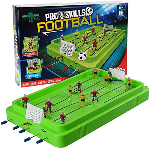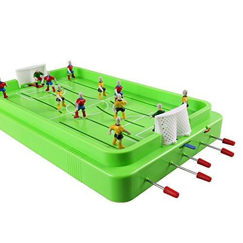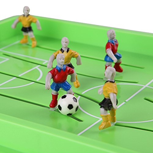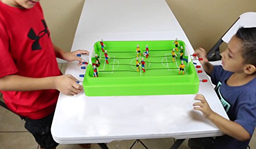 Studio : OUTREE Publisher : OUTREE Product Description A great game style play set that opens the door for table top soccer any time you kid wants! They can set up in no time with fully integrated players there is no setup or tear down so kids can play at the drop of a hat. This game board play set is a perfect way for kids to practice their hand eye coordination and will help build their interest in the world of soccer. Sometimes it's not possible to go outside and kick the ball around so kids can still have fun playing soccer with their football shot games. Description: Included in the table top soccer play set is 1 toy soccer field with 12 integrated soccer players, 6 on the red team and 6 on the blue team. 0