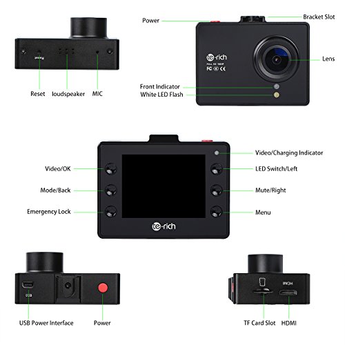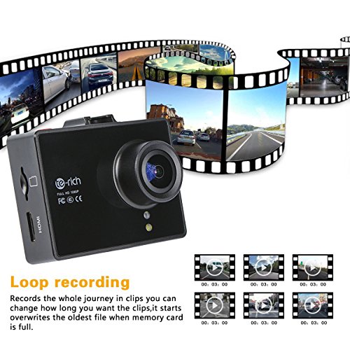 Te-Rich Full HD 1080P Discreet Dashboard Camera Car DVR Vehicle Dash Cam with Parking Monitor, Loop Recording, WDR, G-Sensor
