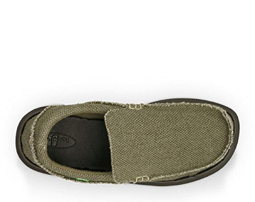 Binding : Apparel Product Description Hang around town or at the beach in these Sanuk Men's Chiba Shoes. Product Features: Sandal shoe Textile liner Handmade heavy textile upper and liner Fraid edge details Super soft, high rebound, molded EVA footbed Footbed features AEGIS Antimicrobial additive Happy U Outsole Vegan and Vegetarian This sidewalk surfer from Sanuk combines the coverage of a loafer with the comfort of a sandal. The lightweight design is perfect for the warm weather season, and the molded footbed flexes with every step. It promises to become a versatile part of your casual wardrobe. 0