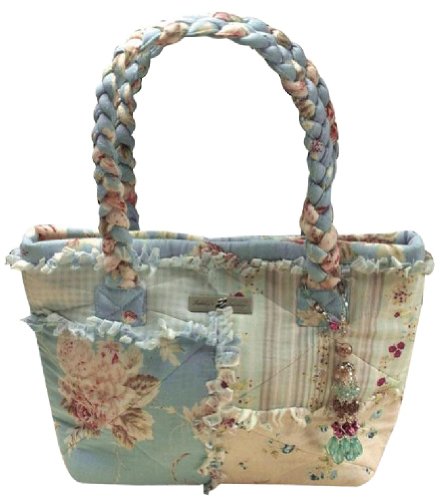 MWW Isabella's Journey Singing the Blues Petite Carpet Top Handled Handbags, perfect handbag for casual clothes. Isabella likes to keep things fun with a jewel-like beaded tassel on each of her bags. Carpet bag is shown with tassel included with purchase. Petite carpet bag is made of Blue 100% Cotton quilted fabric, fringed, with braided rag handle. Snap closure with 2 inside pockets and 1 inside zippered compartment to keep phones, wallets, etc organized. Material: 100% Cotton; Care Instructions: Spot Clean; Body of purse measure: 8.5 high x 13 long x 3.5 wide inches plus 6 inch top handles. Check out Manual Woodworkers and Weavers extensive line of apparel and accessories, gifts, home decor, kitchen linens, wall hangings, indoor/outdoor pillows and seasonal products.Feature