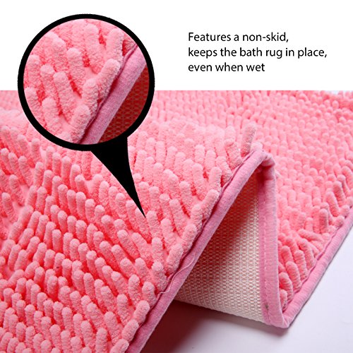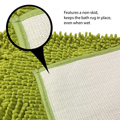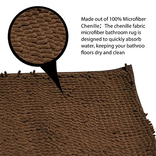 -. Feature : Soft touch, constructed to absorb water quickly, and dries fast / Made of microfiber Chenille;Features a non-skid, no-slip backing / Perfect for the entrance door, bathroom, coffee table, dining table, study, kitchen, bed etc / 1 pc 19x 32" Bath Mat ( 50 x 80 cm ); 1 pc 18 x 20" Contour Rug (45 x 50 cm );1 pc 18x 20" / Each mat has a skid resistant backing to prevent falls and bunching
