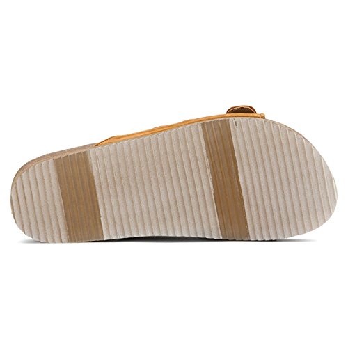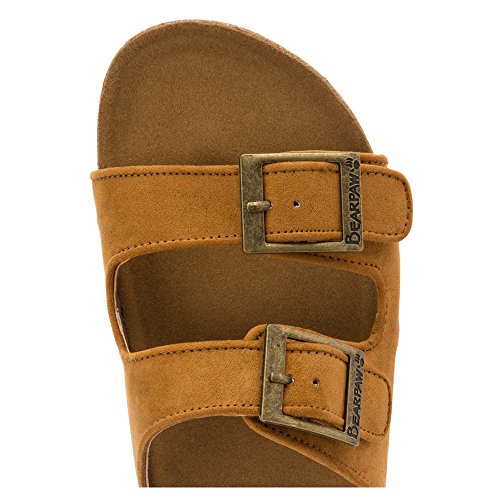 Product DescriptionA microsuede-covered, contoured footbed provides soft cushioning, while the Bearpaw Brooklyn sandal?s classic silhouette ensures casual style.0