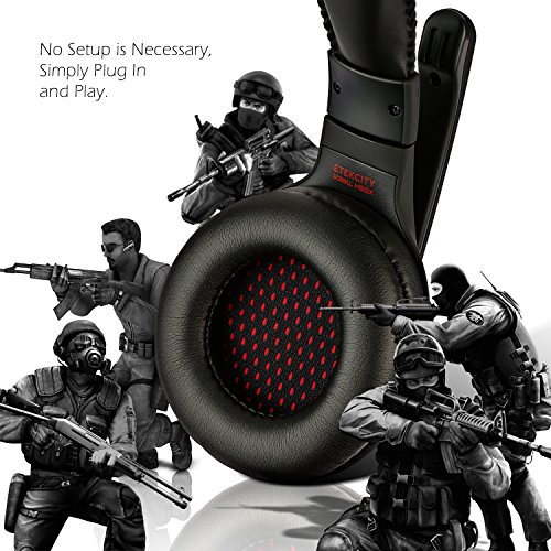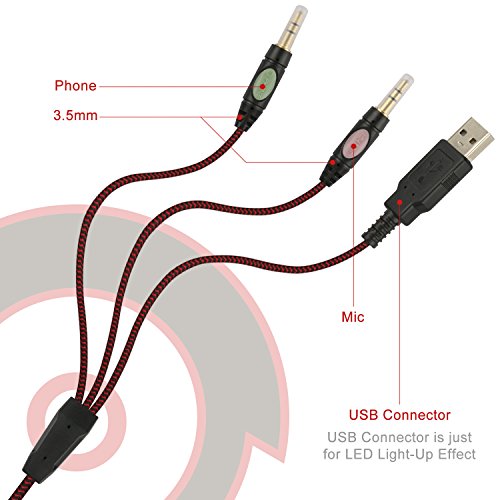 Etekcity Scroll Gaming Headset / Headphones (H5GX): LED Light Up Effect (Black/Red)