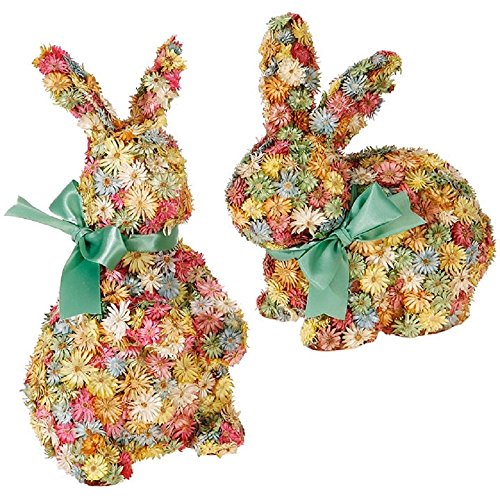 - Charming and natural set of 2 Easter Bunnies, one sitting 8 inches wide x 7.5 inches high and one standing 8 inches wide x 10.5 inches high