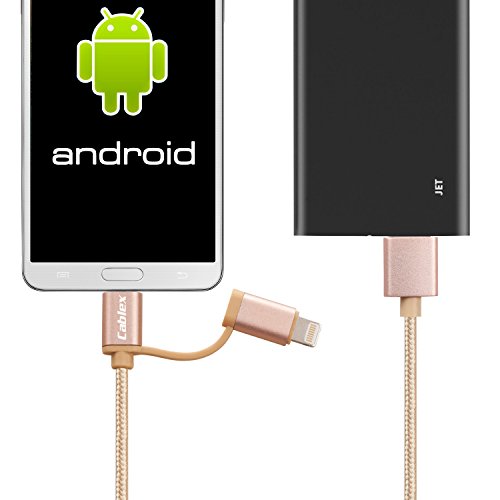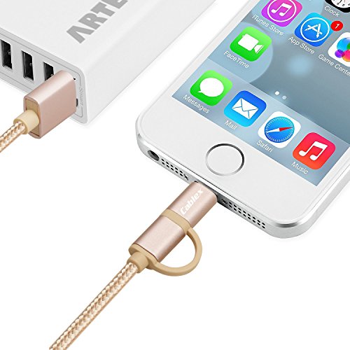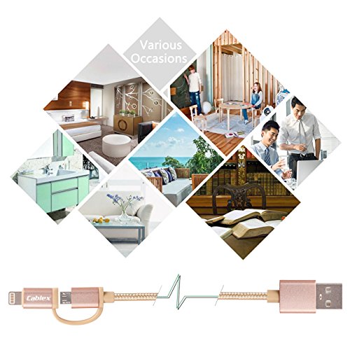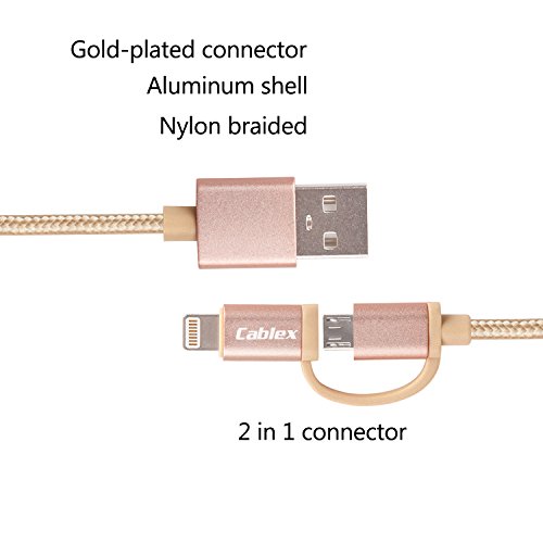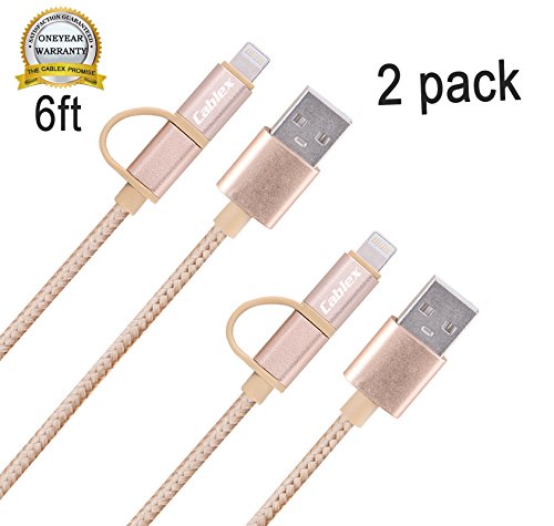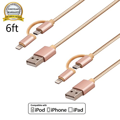 Cablex (TM)2 pcs 6ft Nylon Braided Extra Long 8-Pin Lightning and Micro USB 2-in-1 Charge and Sync Cable Cord for iPhone 6s Plus/6s/6 Plus/6/5s/5c/ 5, iPad, iPod, Samsung, HTC, Nokia and More (Gold)