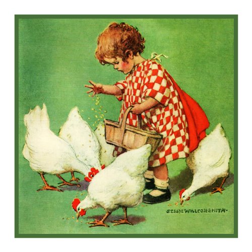 Girl feeding Chickens By Jessie Willcox Smith Counted X Stitch Pattern