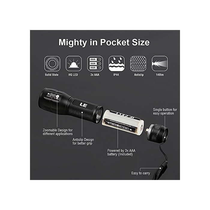 Lighting EVER LE LED회중전등 140루멘 주광색 줌식 방수단4전지 부속