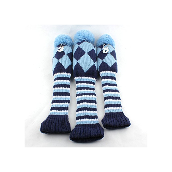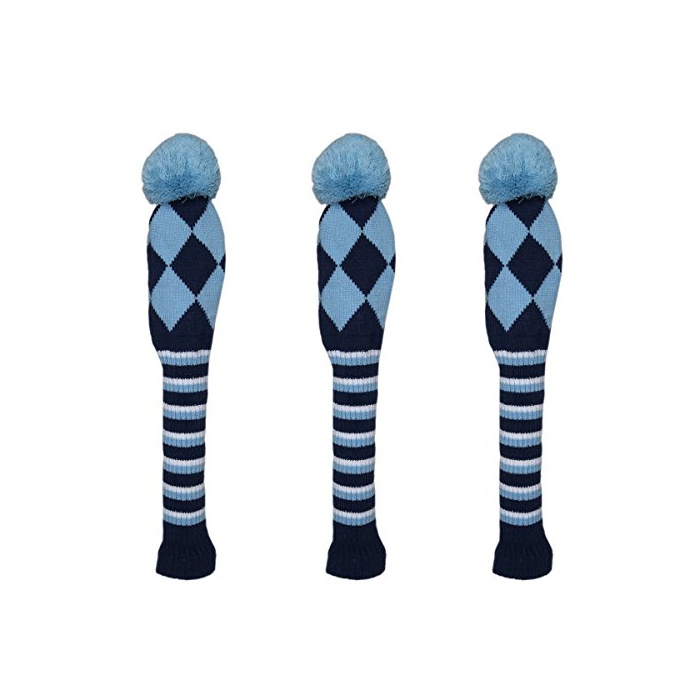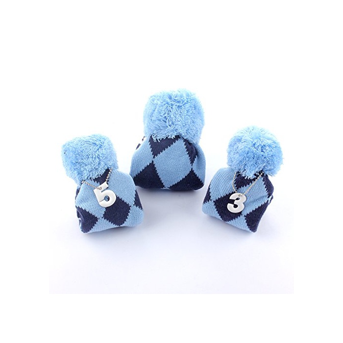 원본상품명: ゴルフヘッドカバ ニット ダイヤシリズ 可愛字ペンダント付け 3点セット (ブル)