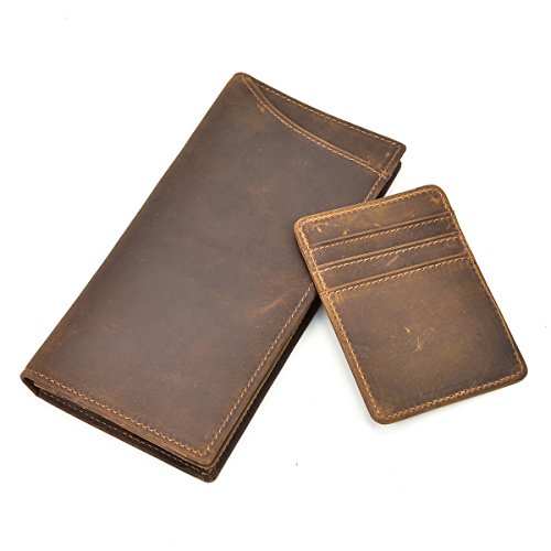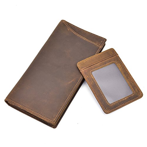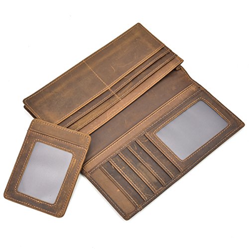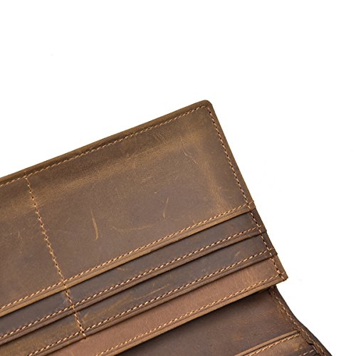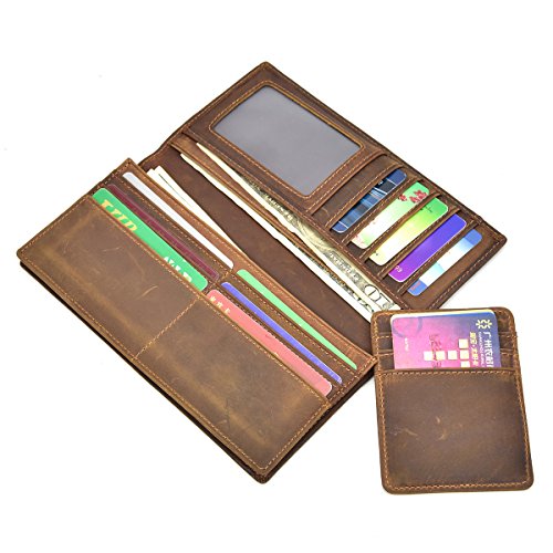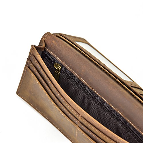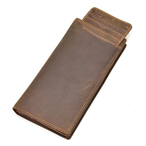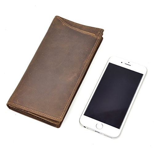 -. Title : Men's Genuine Leather Long Wallet Vintage Cow Leather Bifold Chain Card Holder Clutch